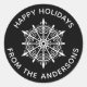 Un pegatina festivo de copos de nieve de vacaciones alegres en blanco y negro que añade ese toque final a sus tarjetas de Navidades. Diseñado para ti por Blackberry Boulevard.