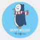 Pegatina Redonda Navidades de invierno en penguín blanco y nevado