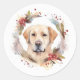 Pegatina Redonda Navidades de Labrador con una presentación festiva