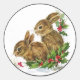 Imagen retro de dos conejos en la nieve mirando a los pájaros en una rama.