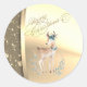 Pegatina Redonda Navidades de moda reno, Faux Gold