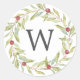 Pegatina Redonda Navidades de Monograma Greenery Wreath Red Berries