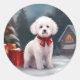 Pegatina Redonda Navidades de Nieve de Bichon Frise Dog