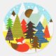 Pegatina Redonda Navidades de oro Bosque Fox Pine para el invierno