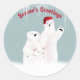 Pegatina Redonda Navidades de oso polar con copos de nieve