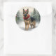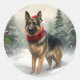 Pegatina Redonda Navidades de Pastor Alemán en Nieve