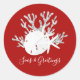 Pegatina Redonda Navidades de playa costera mar Rojo y saludos