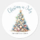 Celebre con un estilo soleado con este pegatina redondo festivo, perfecto para sus Navidades en la celebración de julio. Un gran árbol de Navidad hecho de conchas de playa, estrellas de mar y corales se sienta en el centro, trayendo una divertida y caprichosa atmósfera costera a tu evento. El diseño se caracteriza por una paleta de colores azul verde azulado y marrón que le confiere un ambiente de vacaciones tropicales. "Navidades en julio" envuelve la parte superior en una mezcla de fuentes azules y negras, usando tipografía de guiones y séricos para un aspecto alegre y moderno. El nombre de la familia o una línea personalizado de texto aparece en la parte inferior para un toque personal. Todos los textos, tipos de letra y colores se pueden personalizar para que coincidan con el tema fiesta. Ideal para sellar favores de fiesta, decorar tazas o agregar un detalle de playa a tu reunión de verano.