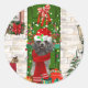 Navidades de perro caniche sentados afuera de la casa decorada con corona de Navidades, el árbol de Navidad es una idea de regalo perfecta para los amantes del perro.