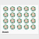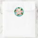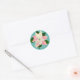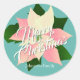 Pink Poinsettia Navidades pegatina redondo clásico con antecedentes verde azulados y Feliz Navidad diciendo, debajo está tu apellido que puedes personalizar. Un hermoso pegatina para cerrar Navidades que saludan los sobres de tarjetas o sellar las cajas de intercambio de galletas de Navidades.