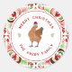 Pegatina Redonda Navidades de pollo color rojo y verde