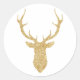 Pegatina Redonda Navidades de Purpurina de oro falso Deer
