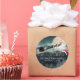 Pegatina Redonda Navidades de renos de Santa Sleigh creen que Santa