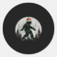 Pegatina Redonda Navidades de Santa Bigfoot iluminan Funny Sasquatc