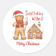 Hombre de pan de jengibre en Santa hat deseándote una Feliz Navidad. Puede cambiar el tipo de letra, color, tamaño o poner su propio texto.