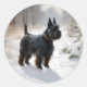 Pegatina Redonda Navidades de Scottish Terrier Let It Snow
