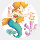 Pequeña sirena linda poniendo una estrella sobre su árbol de Navidad submarino, perfecto para una niña pequeña