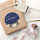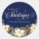 Pegatina Redonda Navidades de tipografía blanca azul Poinsettia