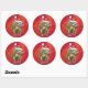 Pegatina Redonda Navidades De Triceratops En Rojo