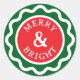 Festiva y divertida, este pequeño pegatina redondo presenta un texto editable que dice "Merry and Bright" dentro de una forma de vieira circular. Es una elección fácil cerrar sobres o añadir regalos y favores festivos con la combinación de colores clásicos del rojo cerezo, verde bosque y blanco para ese ambiente clásico de Navidades.