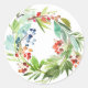 Pegatina Redonda Navidades de Winterberry Rojo y Juniper Wreath