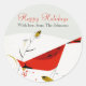 Pegatina Redonda Navidades del Cardenal Charley Harper en invierno