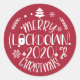 Recuerden el año 2020, el año del bloqueo, y decoren sus regalos navideños con este pegatina redondo rojo conmemorativo. La leyenda dice Navidades del cerezo 2020 con letras negras, decorados con una cerradura, algunos copos de nieve y adornos navideños