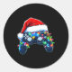 Pegatina Redonda Navidades del controlador de videojuegos Santa Hat