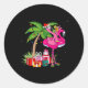 Pegatina Redonda Navidades Del Flamingo Rosado Tropical En Julio En