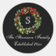 Pegatina Redonda Navidades del Monograma Classic Holly Wreath Perso