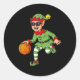 Pegatina Redonda Navidades Elf Dribbling Baloncesto Divertido Niños