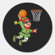 Pegatina Redonda Navidades Elf Dunking Un Básquetbol Divertido Niño