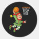 Pegatina Redonda Navidades Elf Dunking Un Básquetbol Divertido Niño