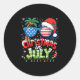 Pegatina Redonda Navidades En Julio Bandera Estadounidense Playa De