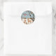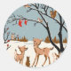 En los bosques cubiertos de nieve, los pequeños animales encuentran medias de Navidad colgando de los miembros de los árboles. Colores suaves. Los animales pequeños incluyen aves, ardillas, ciervos y conejitos.