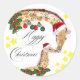 Pegatina Redonda Navidades felices con una familia amorosa de jiraf