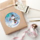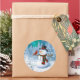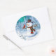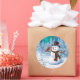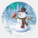 Pegatina Redonda Navidades felices Snowman y Birds Winter Scene