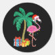 Pegatina Redonda Navidades Flamingo Rosado Palm Tree Tropical Xmas