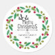 Pegatina Redonda Navidades florales Nombre de la familia Wreath