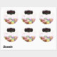 Fun Navidad galleta y trata "desde la cocina de" pegatinas o "casero por" a--de etiquetas con coloridas galletas de macarón con rociadores en caída y su elección de color de fondo, personalizado con su texto y nombre.