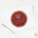 Este elegante pegatina de dirección de retorno presenta un círculo rojo burdeos sobre un patrón de fondo de Relieve metalizado burdeos y oro falso y rayas diagonales purpurinas. Personalice el diseño con su monograma inicial y su apellido en letra dorada serif, con su dirección a continuación en sans serif.