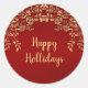 Navidades Golden Leaves Red Holidays Classic Round Pegatina. Diseño elegante, bonito y moderno. Con un menú Zazzle fácil de usar; Mis diseños pueden animar a los clientes a crear sus propios elementos únicos. Se pueden cambiar el estilo, el tamaño y los colores de las fuentes. Elementos coincidentes disponibles.