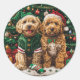 Pegatina Redonda Navidades Goldendoodle Puppy Dogs