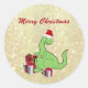 Pegatina Redonda Navidades graciosos y bonitos Santa dinosaurio Cla