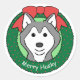 Feliz Navidad! ¡Este Husky Siberiano presenta un Husky Siberiano lindo dentro de una corona de Navidades! Nuestros navidades de perro personalizados hacen grandes regalos de vacaciones para los amantes del perro. ¡Usa una camiseta Husky siberiana para el fiesta de tus Navidades, dale imanes Husky siberiano como regalo de vacaciones o envía saludos de vacaciones con tarjetas de Navidades Husky siberiano! A los propietarios siberianos de Husky les encantará este singular arte canino durante las vacaciones.