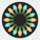 Este pegatina presenta una colorida gráfica de Navidades que representa un círculo de bombillas festivas en azul y naranja. El color de fondo puede cambiarse editando el diseño.
