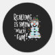 Pegatina Redonda Navidades leyendo Tee Snowman libro Tee Book Lover