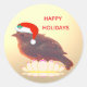 Pegatina Redonda Navidades lindo pájaro pequeño