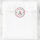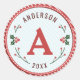 Navidades de diseño vintage monogramaban pegatinas. Diseñado con colores rojos y verdes sobre un fondo rayado azul claro diagonal. Rodeado por un bonito diseño. Personalizar con su nombre, inicial y año.
