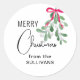 Este pegatina festivo está decorado con mistletoe color agua verde, cinta roja y tipografía de escritura elegante. Personalizable fácil. Acuarela original © Michele Davies.